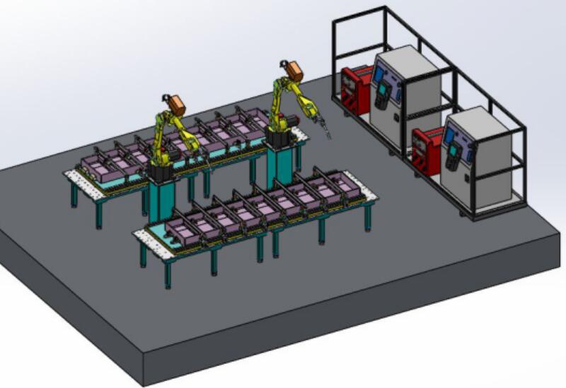 該系統為雙機器人焊接系統,工位工裝夾具上實現工件的點焊組對和焊接,確保工件能匹配焊接,以極大化提高機器人生產效率。