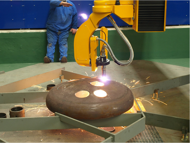 容器封頭切割機器人適合筒體、封頭上各種相貫線端頭和孔的高精度、率一次成型切割。對于多孔筒體、封頭的連續定位切割表現出眾,是化工設備、壓力容器、制藥設備、海洋工程、造船等行業加工的理想之選。