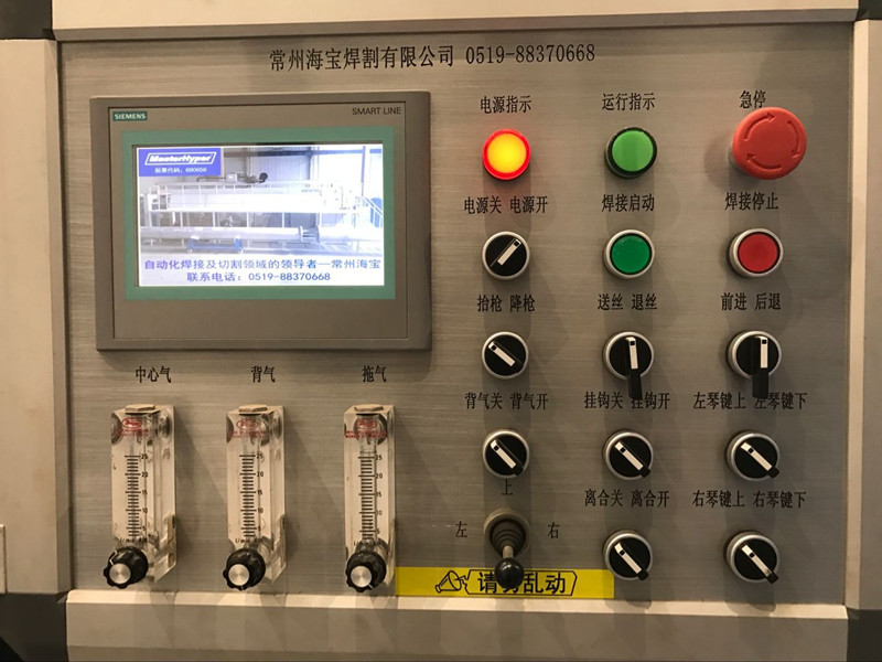 - 常州海寶焊割公司是自動化焊接/切割系統供應商,以自身的技術實力和服務保障體系服務于工程機械、機車車輛、煤礦機械、鍋爐、石化、食品醫藥、管道建設、電力建設等行業。我公司和機器人廠商FANUC合作,致力于中厚板結構件制造領域的機器人系統的應用和工藝推廣,針對用戶的具體情況量身定制, 直/縱縫焊接機 性能用途: 自動直縫焊機是用于圓筒的縱縫焊接與平板的縱縫對接。該設備適應二氧化碳保護焊和氬弧填絲等多種焊接方式。工件壓緊采用氣囊式壓緊機構,壓緊后保證工件全長范圍與焊接銅墊充分接觸,符合焊接工藝要求,實現單面焊接,兩面成型,保證焊接質量;設備由PLC控制